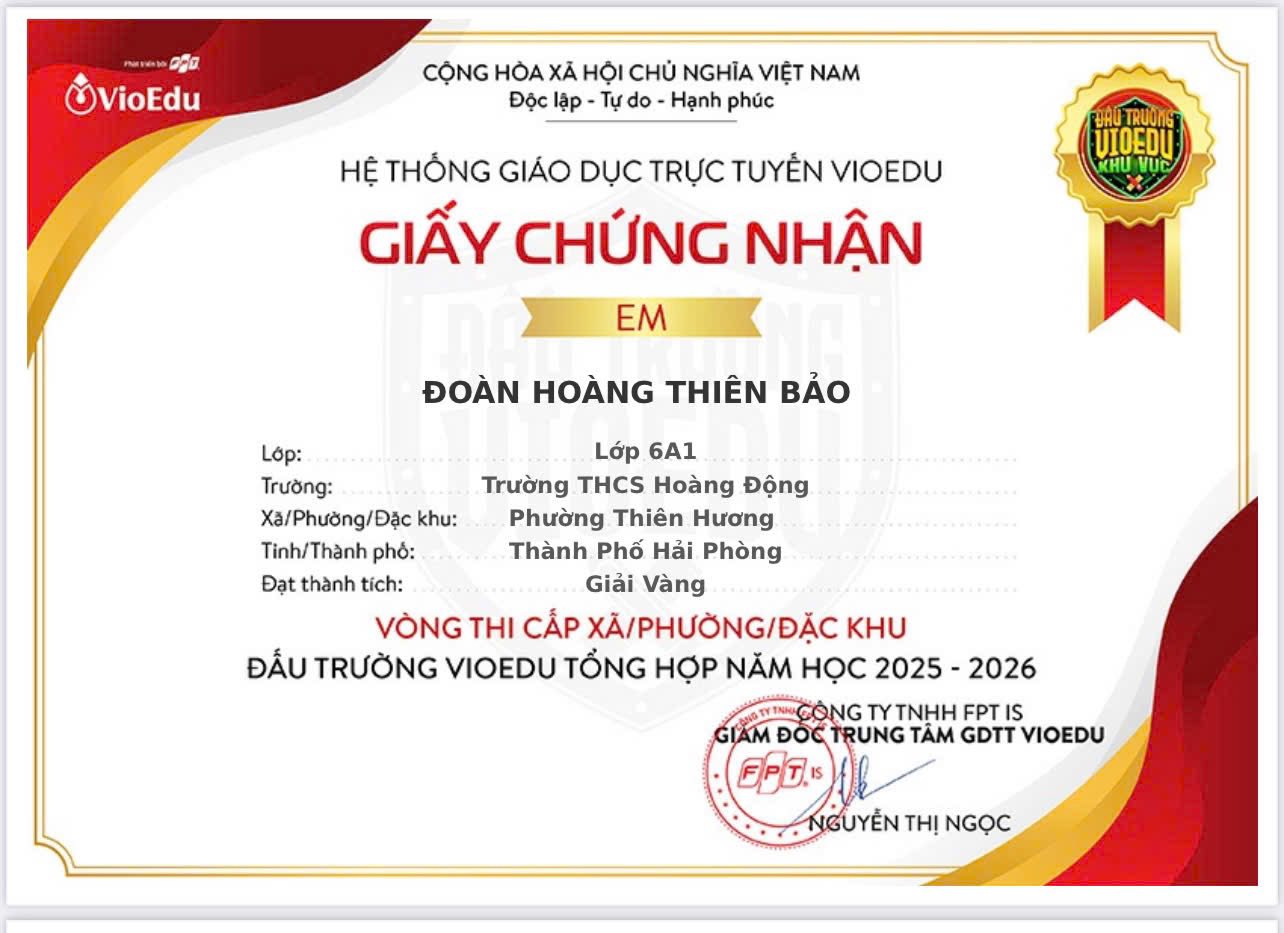 Vừa qua, các em học sinh của nhà trường đã tích cực tham gia Đấu trường VioEdu cấp phường và xuất sắc giành được nhiều thành tích đáng tự hào. Đây là sân chơi trí tuệ bổ ích, giúp các em phát huy năng lực tư duy, rèn luyện kiến thức và bản lĩnh trong học tập.