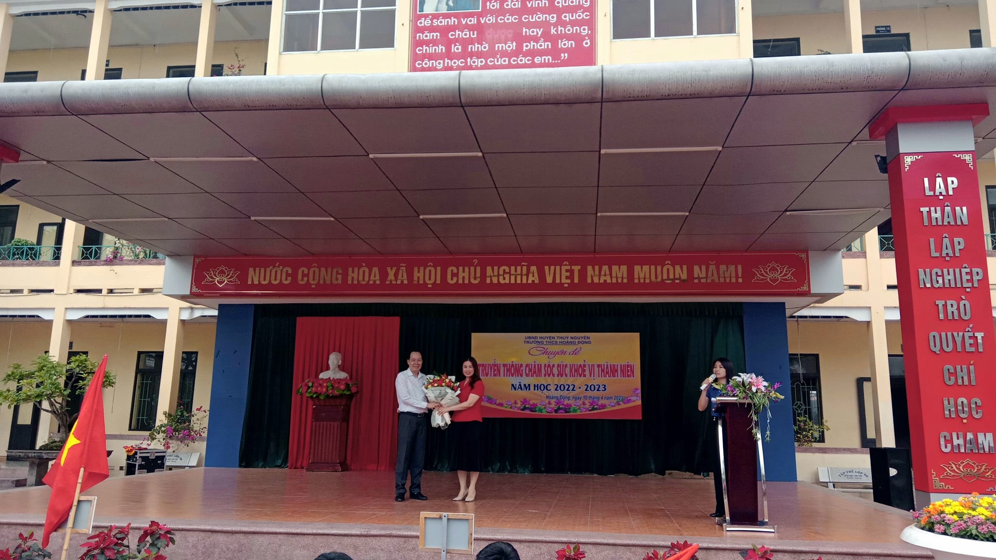 Được sự đồng ý của Chi bộ, BGH nhà trường, Liên đội THCS Hoàng Động long trọng tổ chức lễ chào cờ tháng 4 nhằm tổng kết chương trình động công tác đội, khen thưởng các cá nhân có thành tích xuất sắc trong cuộc thi các cấp và tổ chức chuyên đề Truyền thông sức khỏe sinh sản vị thành niên cho các em học sinh trong toàn Liên đội.